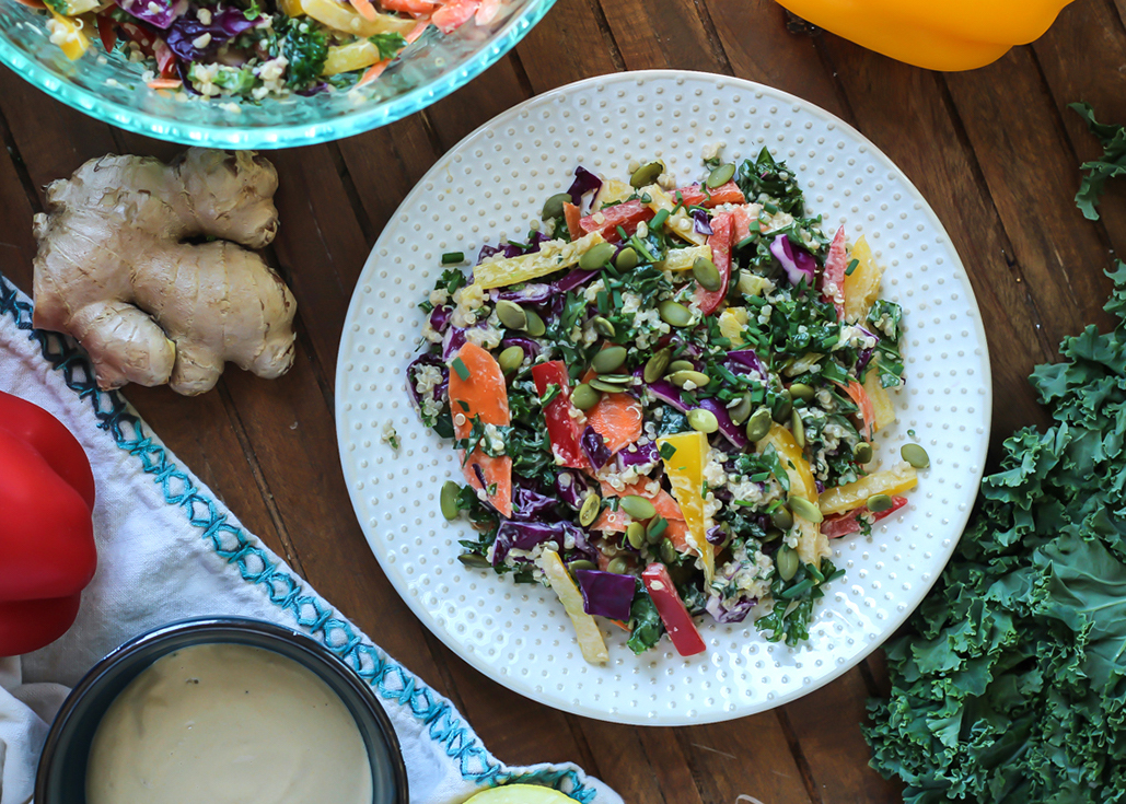Kale Quinoa Salad with Creamy Ginger Dressing