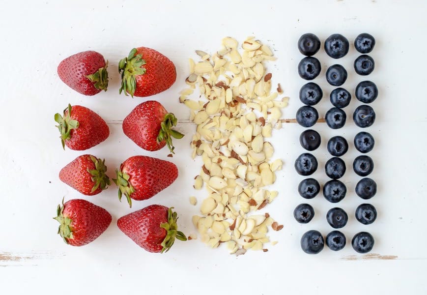Next week is America’s birthday and what’s more fun that eating with a theme? We’ve got you covered with some fun red, white and blue foods that will also keep you fueled so you can stay up late to watch the fireworks and enjoy the fun with family and friends! Sadly there aren’t many blue foods …