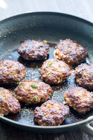 - Once skillet is sizzling hot, add patties and fry about 2-3 minutes on each side until desired doneness is achieved.